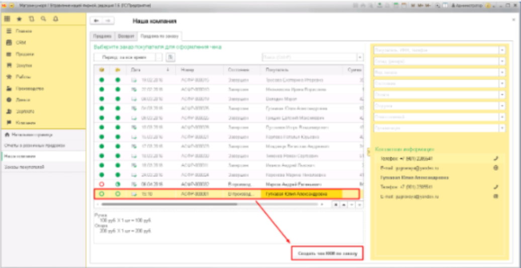 Келесі қадам, біз тізімде қажетті тапсырысты іздейміз: мұны өзіңіз жасай аласыз немесе көмекшіні қолдана отырып, оның ішінде тапсырыстың әр түрлі нақтылауы жазылған, оны төменде көруге болады: