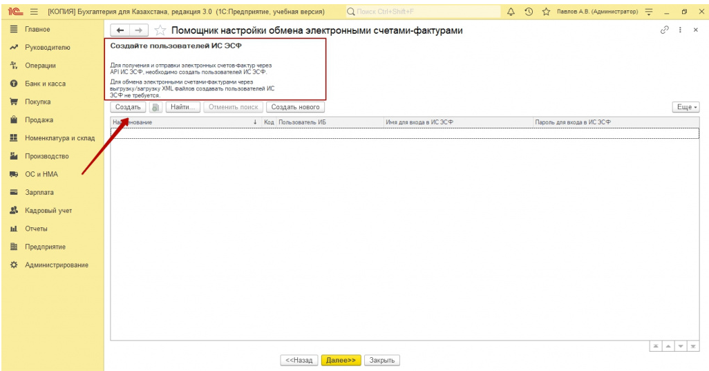 ЭСФ АЖ жаңа пайдаланушысын құру көмекшісі
