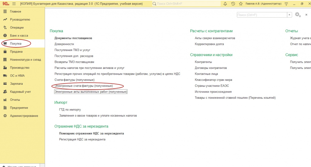 3. 1С:Кәсіпорын бағдарламасы жүйесіндегі электрондық шот-фактуралармен жұмыс
