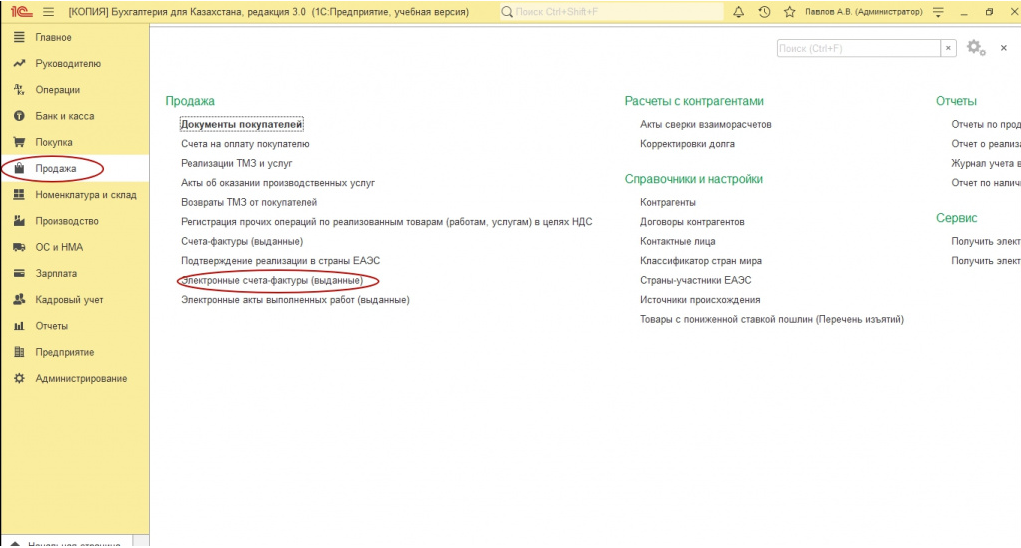 3. 1С:кәсіпорын бағдарламасы жүйесіндегі электрондық шот-фактуралармен жұмыс