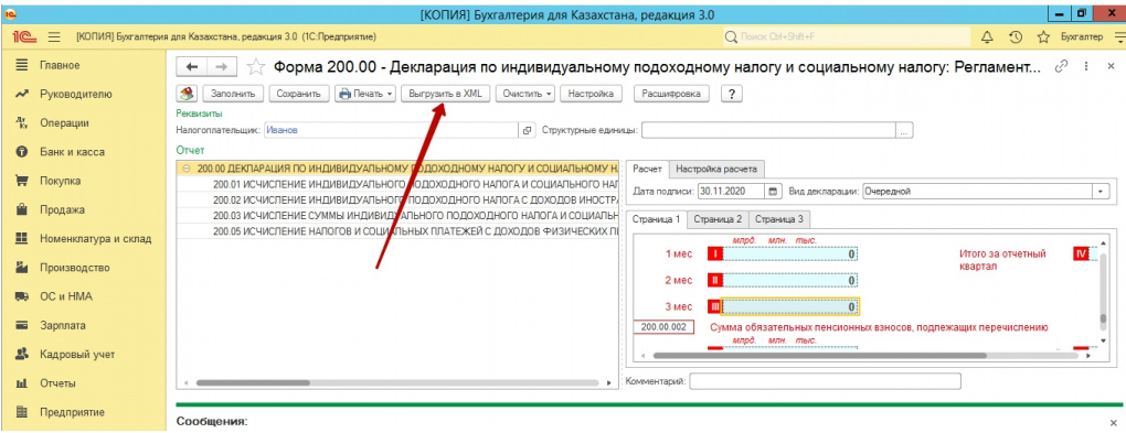 Барлық мәліметтер ҚР 200-нысанына енгізілгеннен кейін, келесі кезеңде оны 1С файлының «xml» форматында түсіру керек, содан кейін ҚР 200-нысанын салыққа түсіріп, жөнелтеміз.
