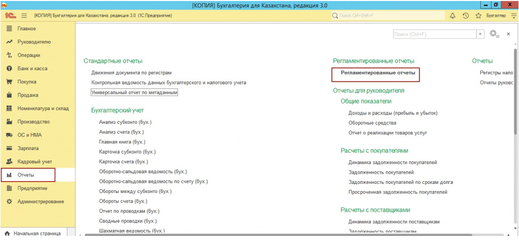 «1С:Бухгалтерия 3.0» конфигурациясындағы ҚР 200 нысанын «есептер» панелін таңдап, төменде көрсетілгендей «регламенттік есептерді» басу арқылы табуға болады: