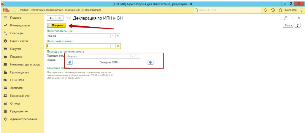 2. 1С Конфигурация жүйесіндегі 200-нысанды толтыру жөніндегі Нұсқаулық:Бухгалтерлік есеп