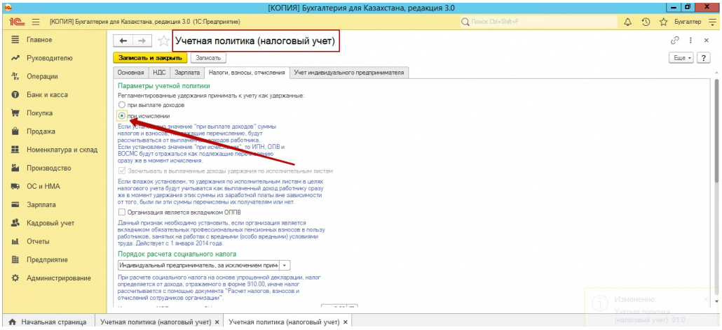 Жоғарыда сипатталған іс-әрекеттер тиісті тәртіппен орындалғаннан кейін салық салудың есеп саясатының қалай орындалғанын тексеру қажет, содан кейін ғана деректерді ҚР нысанына енгізу қажет.