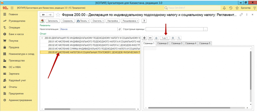 1С бухгалтерлік есеп жүйесінің 200 салық нысаны салық төлеушілермен ұсынылады және тоқсан сайын толтыруға және тапсыруға арналған, бұл жеке табыс және әлеуметтік салықтар үшін декларация болып табылады.