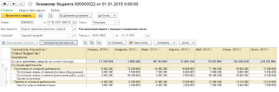 Төменде "1С: ERP-де бюджеттеу"ішкі жүйесінде бюджетті есепке алу мысалы келтірілген: