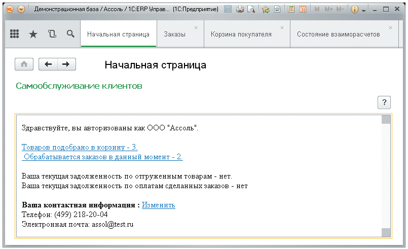 Мысалы, осы ішкі жүйеде клиенттердің өзіне-өзі қызмет көрсететін терезесі келесідей болады: