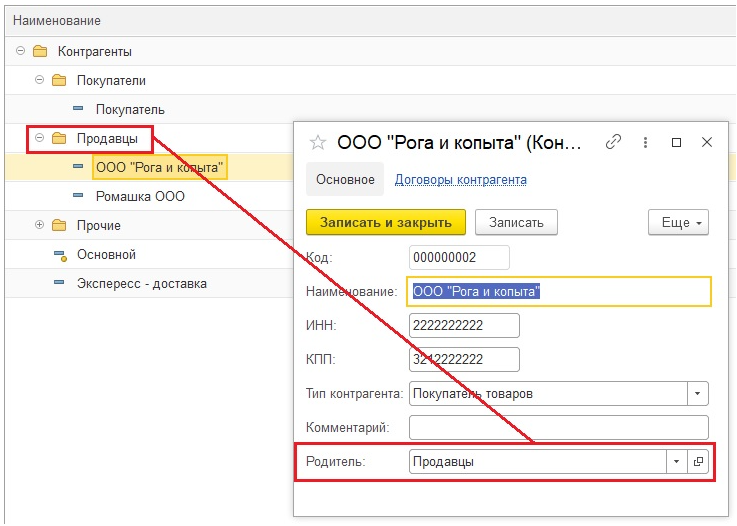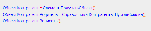 1С иерархиялық анықтамалығының ішіндегі элементтердің ретін өзгерту қажет болған жағдайда, сіз негізгі деректемелерге-«та-анаға» жүгінуіңіз керек. Бұл деректеме үшін сіз оған жаңа сілтеме жасап, қолдануыңыз керек, ол басқа сілтемені қамитиды, мысалы, осылай.