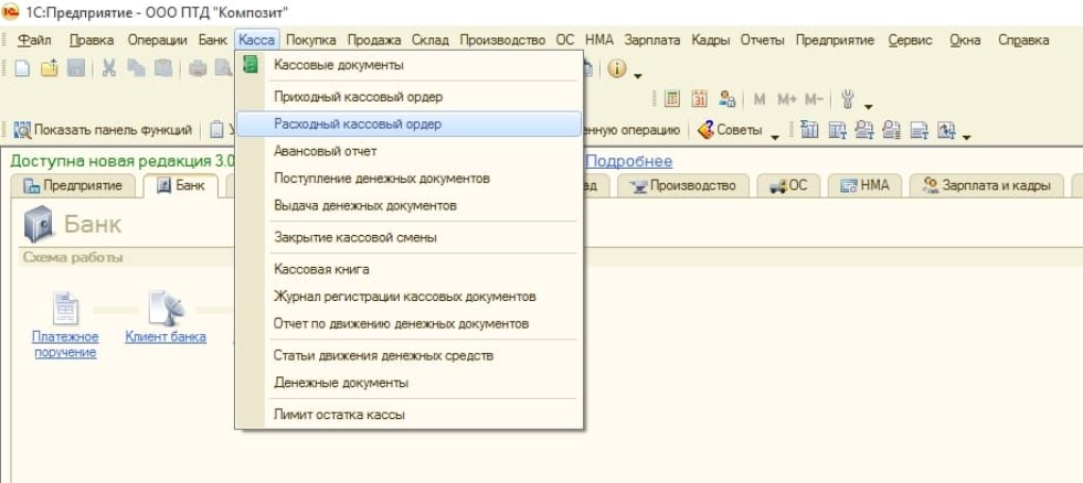 Мұндай жағдайларда компания (немесе жеке кәсіпкер) осы ақшалай қаражатты қайтаруы керек. Бұл операция контрагенттің хатына негізделуі керек. Мұндай хатта оның деректемелері дәне дұрыс емес санаудың себебі жазылуы керек. Сонымен қатар, ақшаны қайтарудың өзі қайтарылған күні 1С жүйесінің конфигурациясының ішінде жасалуы керек. 1С жүйесінде қате аударылған қолма-қол ақшаны есеп айырысу шотына қайтаруды көрсету алгоритмін қарастырыңыз: