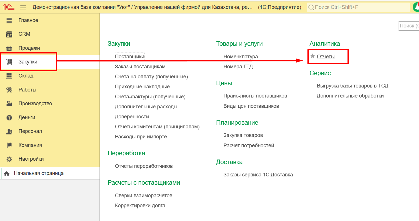 1. Основные отчеты по подсистеме Закупки в конфигурации 1С: УНФ