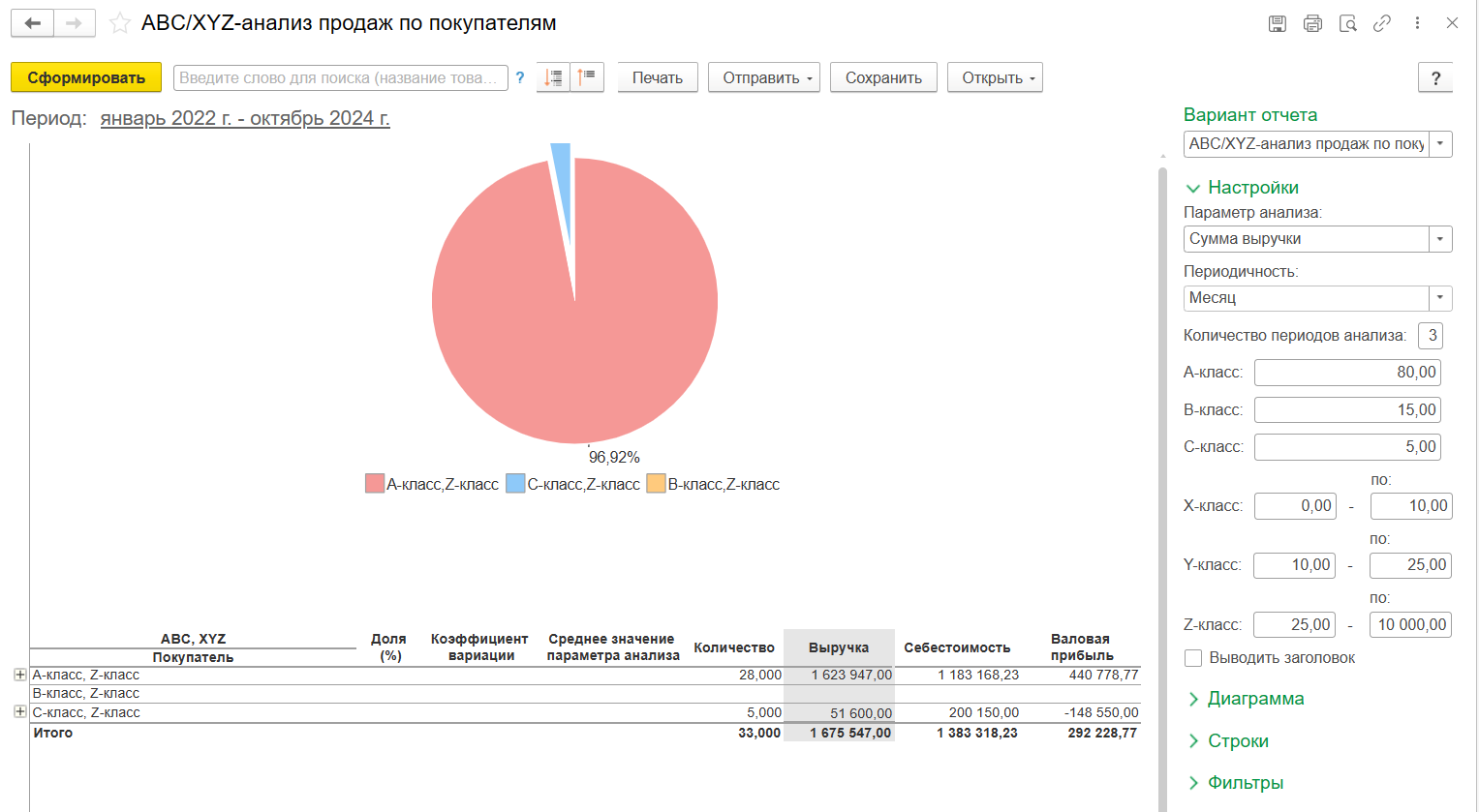 · ABC/XYZ - анализ продаж по покупателям – Данный отчет показывает