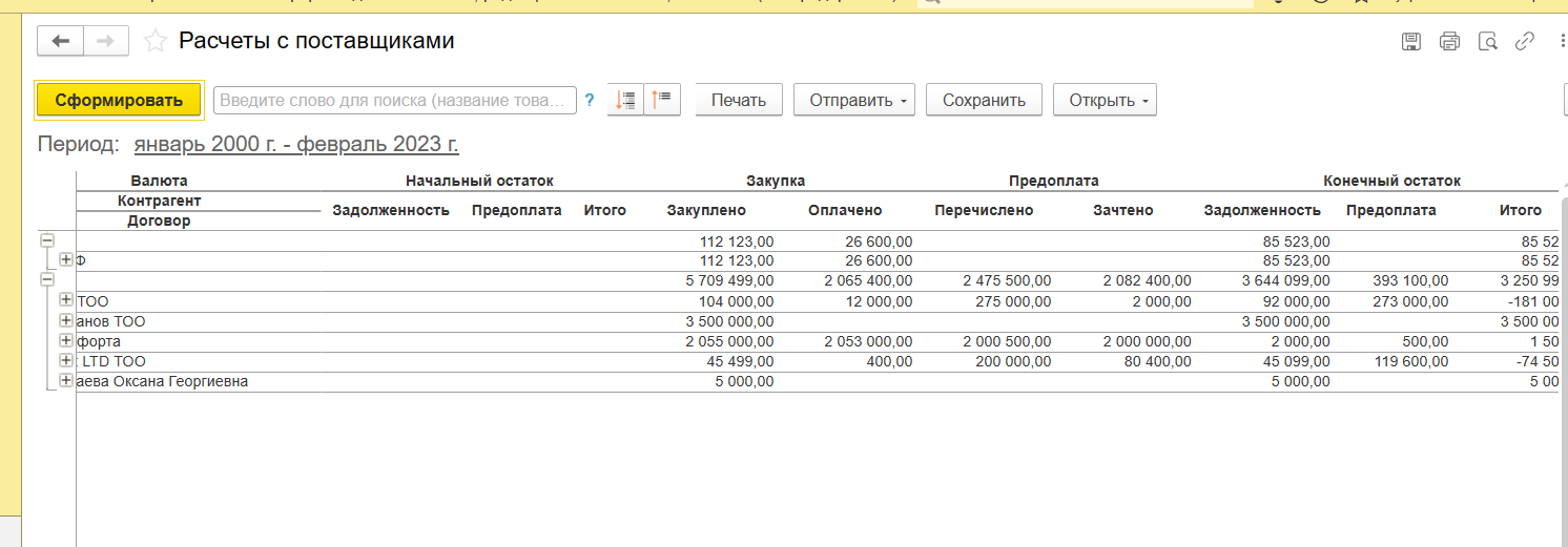 · Расчеты с поставщиками – данный отчет отображает взаиморасчеты с поставщиком. В подсистеме продаж есть такой же отчет;