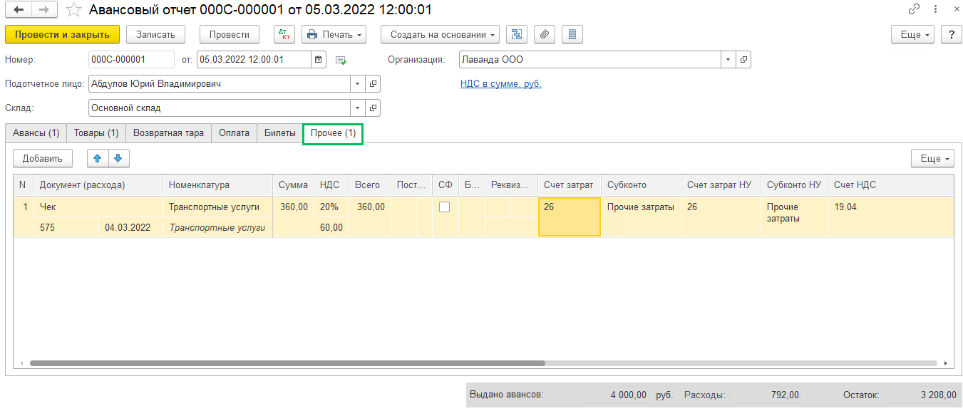 Авансовый отчет