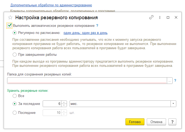 1. Настройка автоматического резервного копирования в 1С: Предприятие 8. Бухгалтерия сельскохозяйственного предприятия