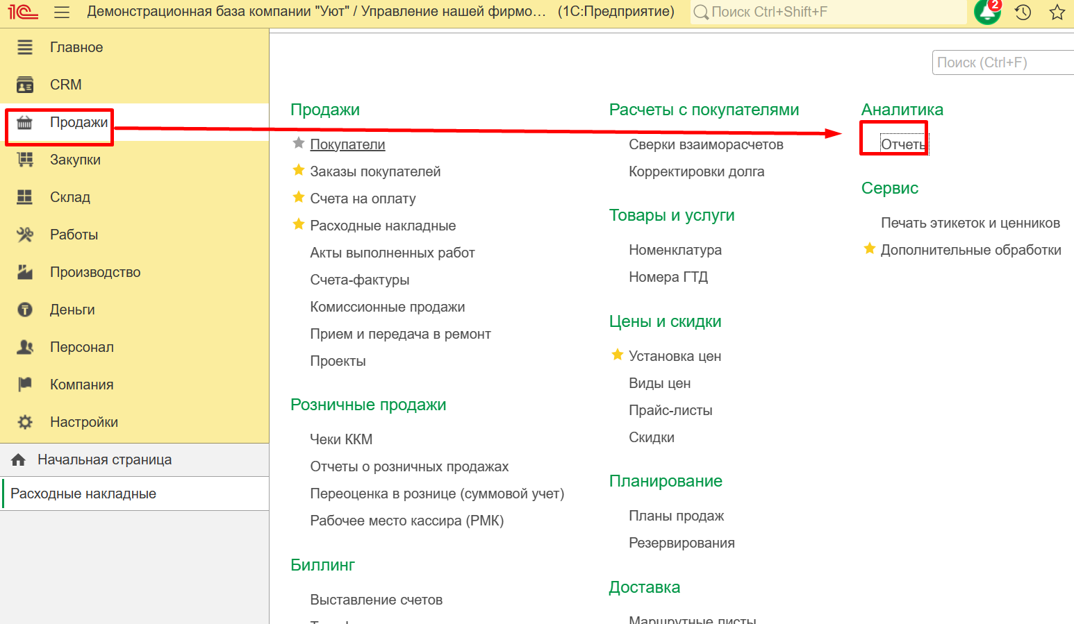 Есеп құрып, комиссионерге берілген тауарларды тексереміз. Ол үшін біз сатудың ішкі жүйесінің есептерін ашамыз.