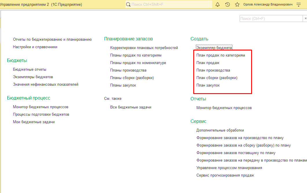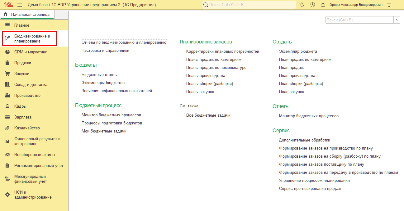Для ввода бюджета в системе 1С: ERP Управление предприятием 2 предусмотрен отдельный раздел: «Бюджетирование и планирование 1С».