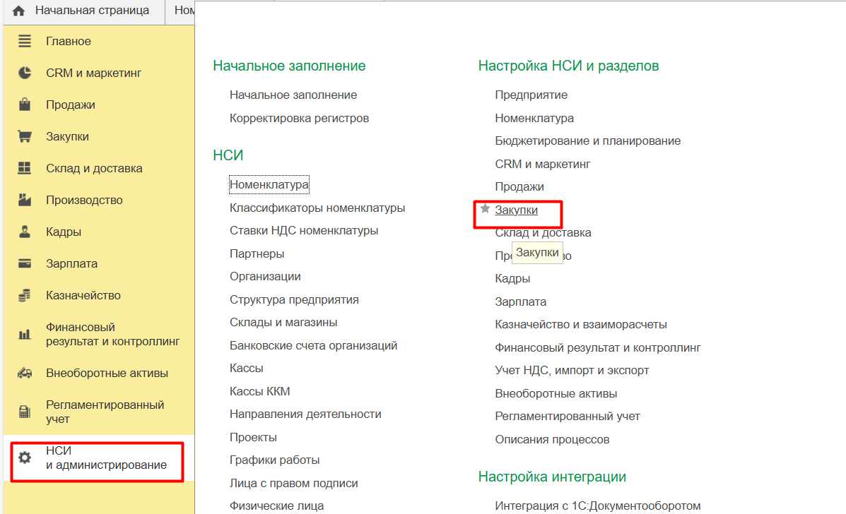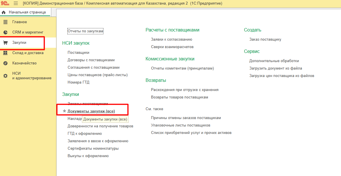 1. Настройка учета закупок в 1С: КА для Казахстана