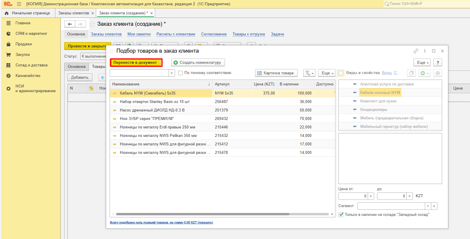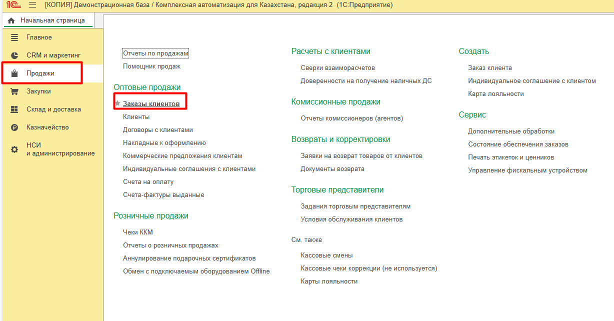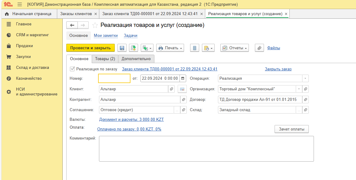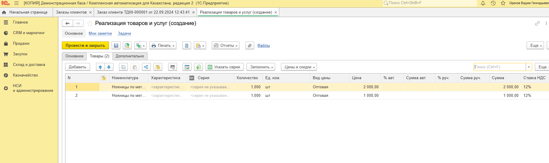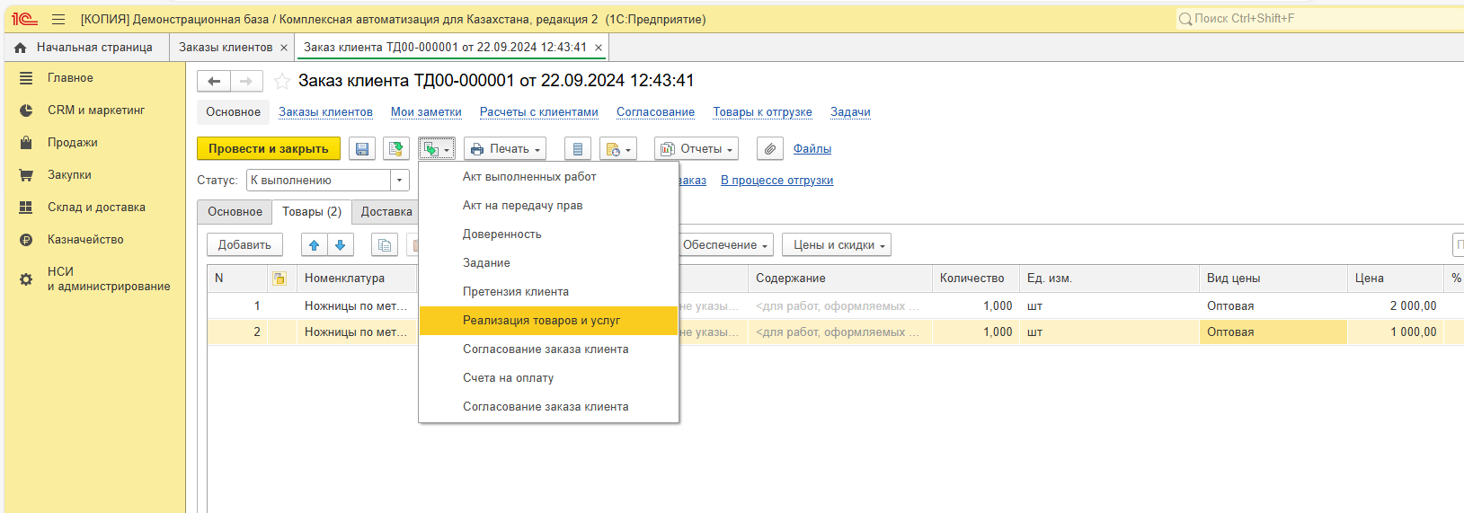 3. Как оформить продажу в 1C: Комплексная Автоматизация для Казахстана