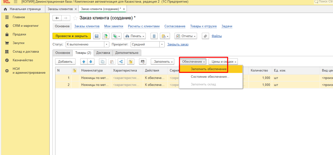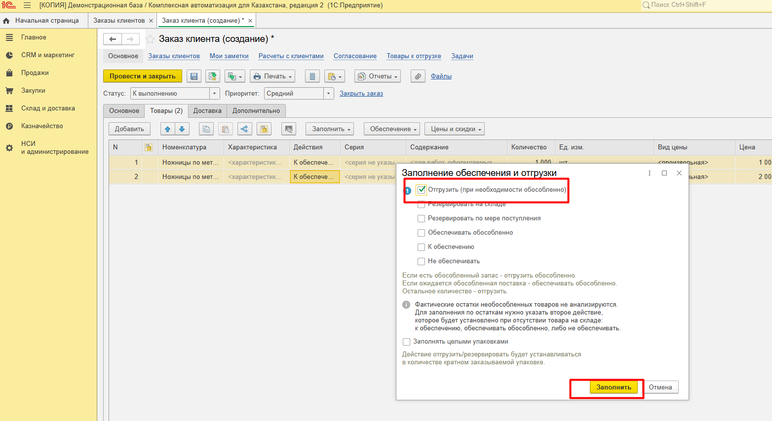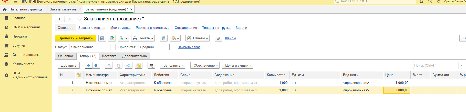 В данной статье рассмотрим, как оформить продажу товаров в 1C: Комплексная Автоматизация для Казахстана (далее 1C: КА).