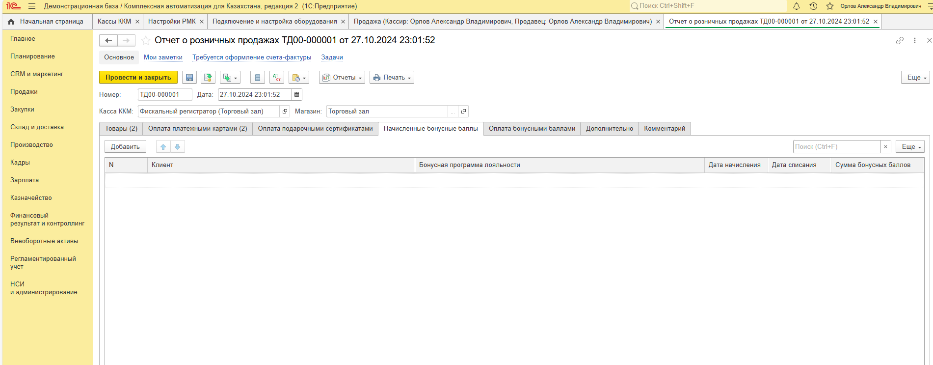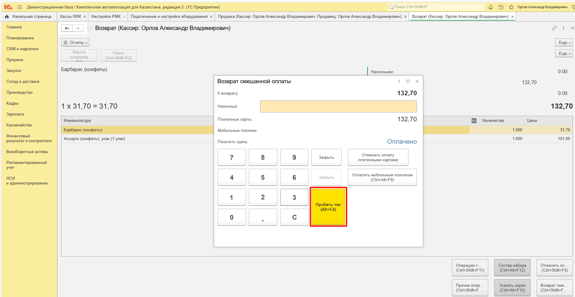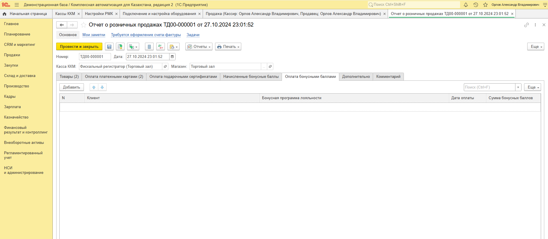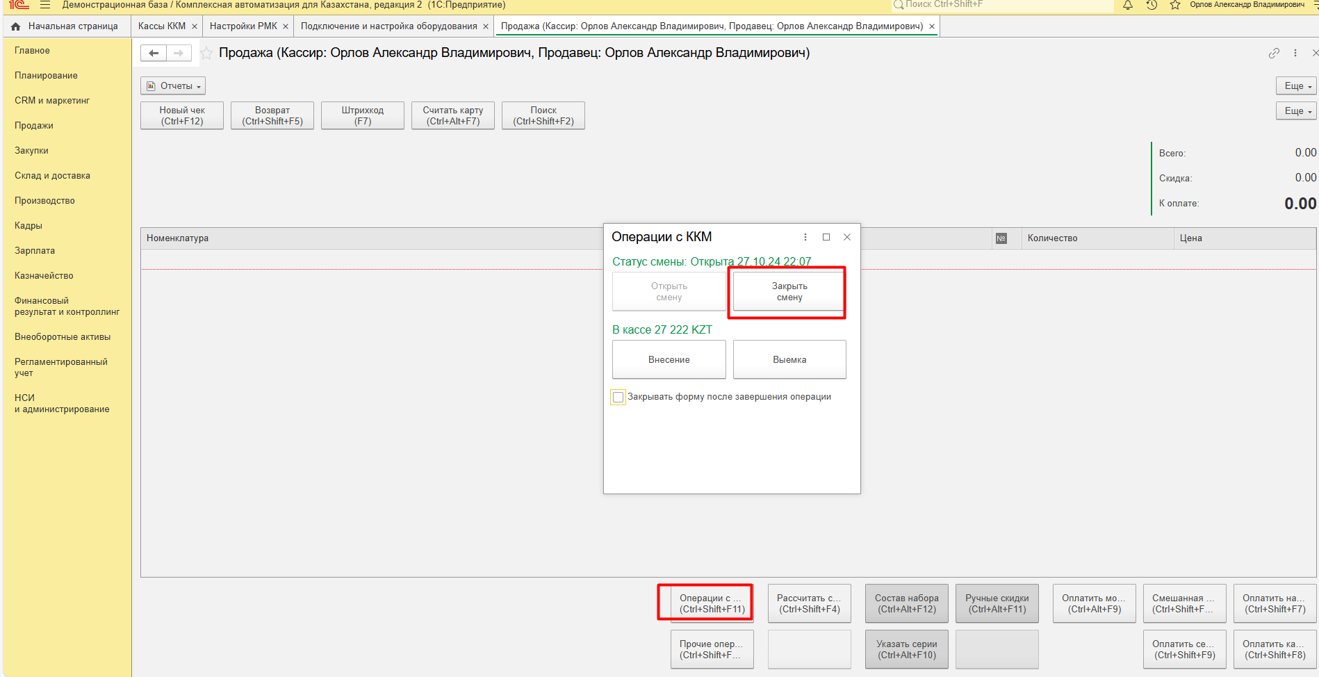 2. Как закрыть кассовую смену в 1С: КА для Казахстана