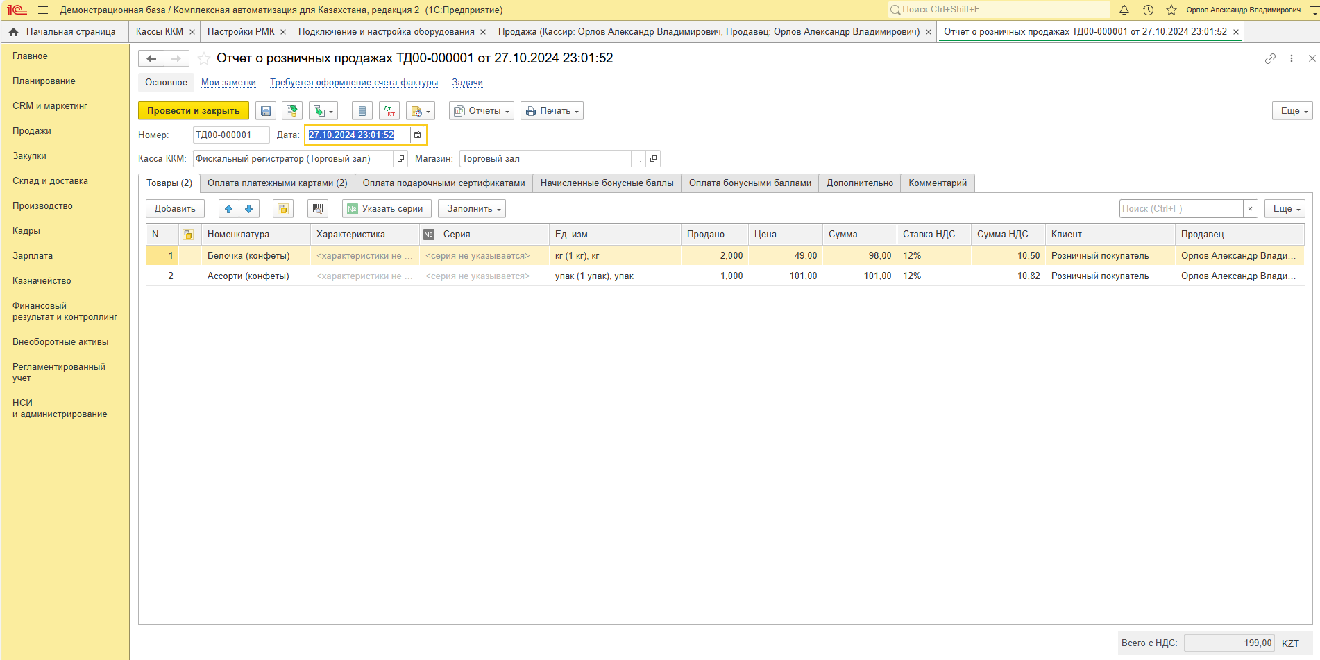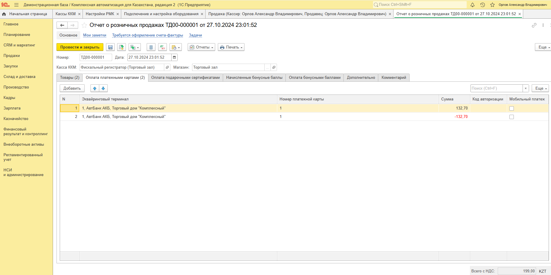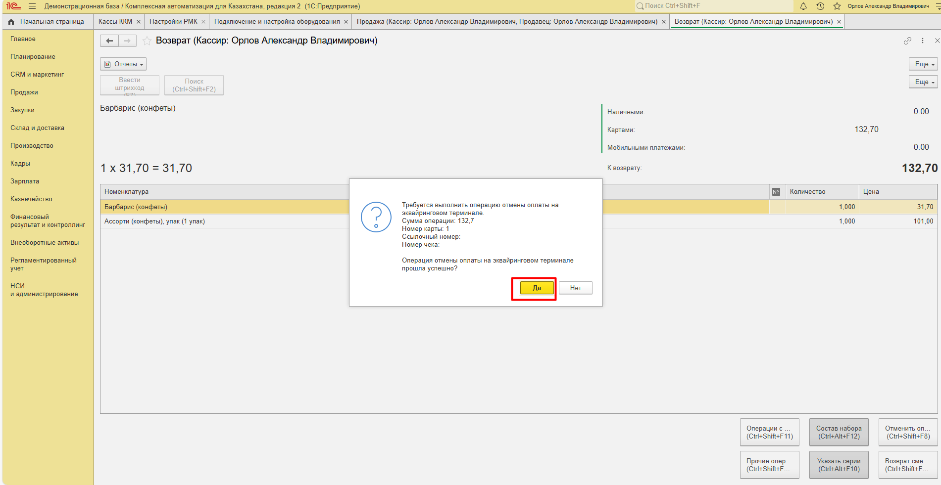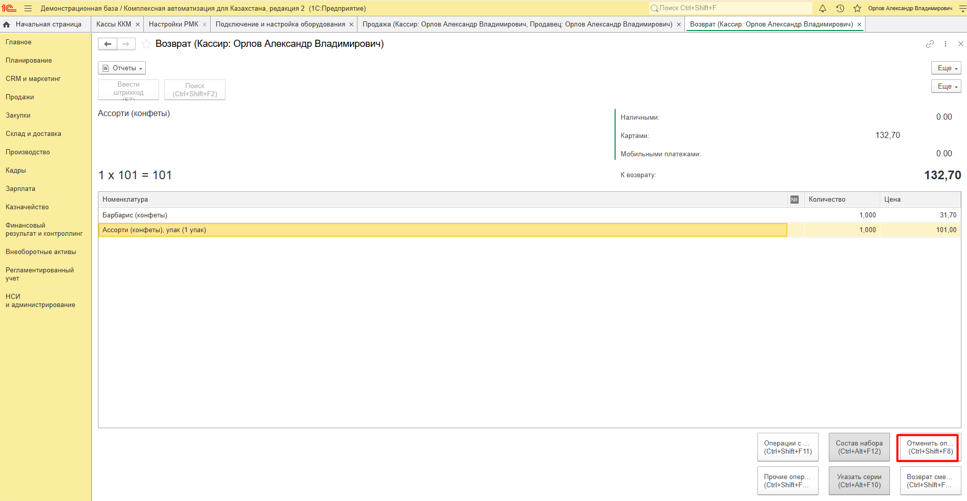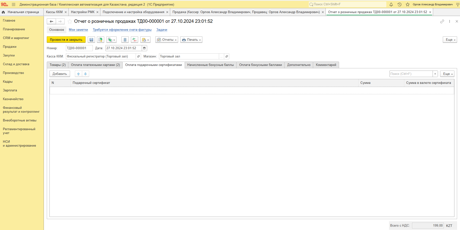 2. Как закрыть кассовую смену в 1С: КА для Казахстана