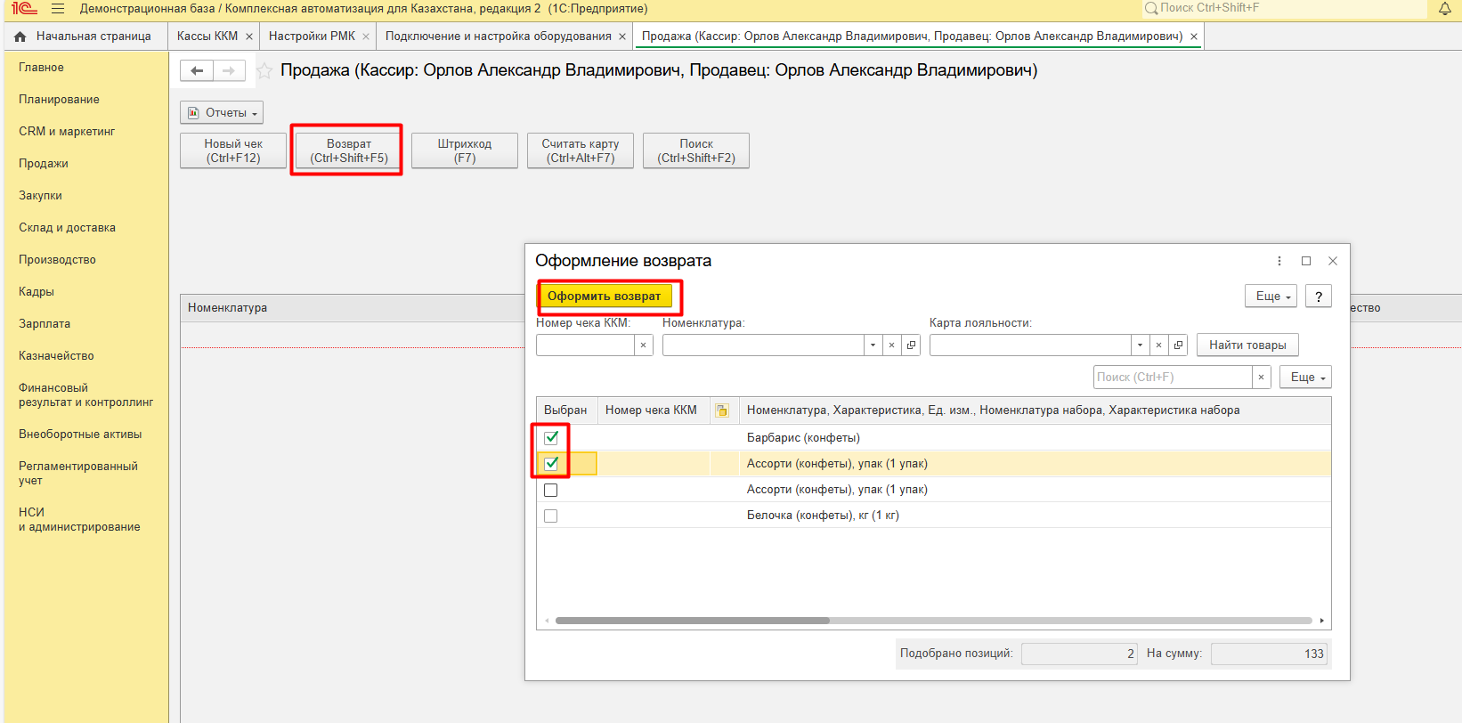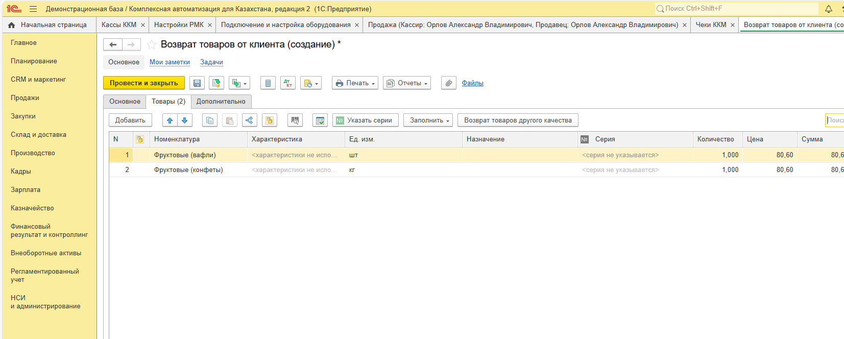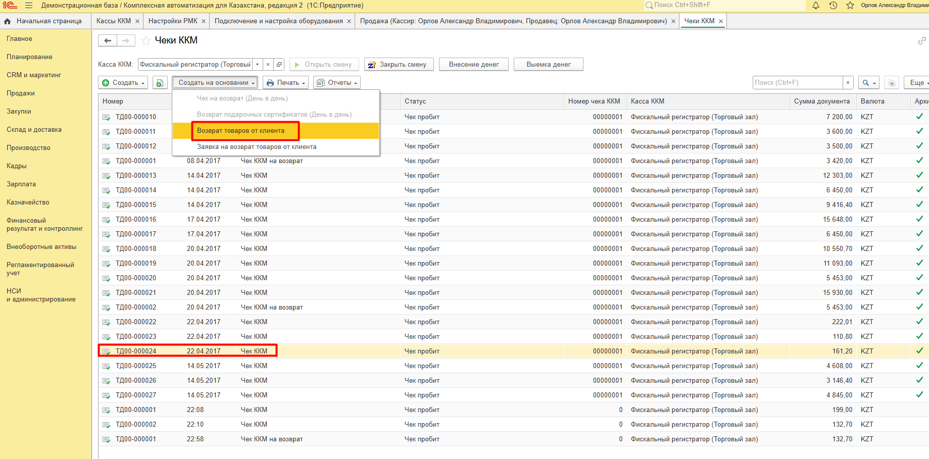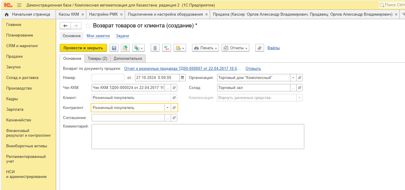 • Как оформить возврат товаров от покупателя в розничной торговле в 1С: КА для Казахстана;