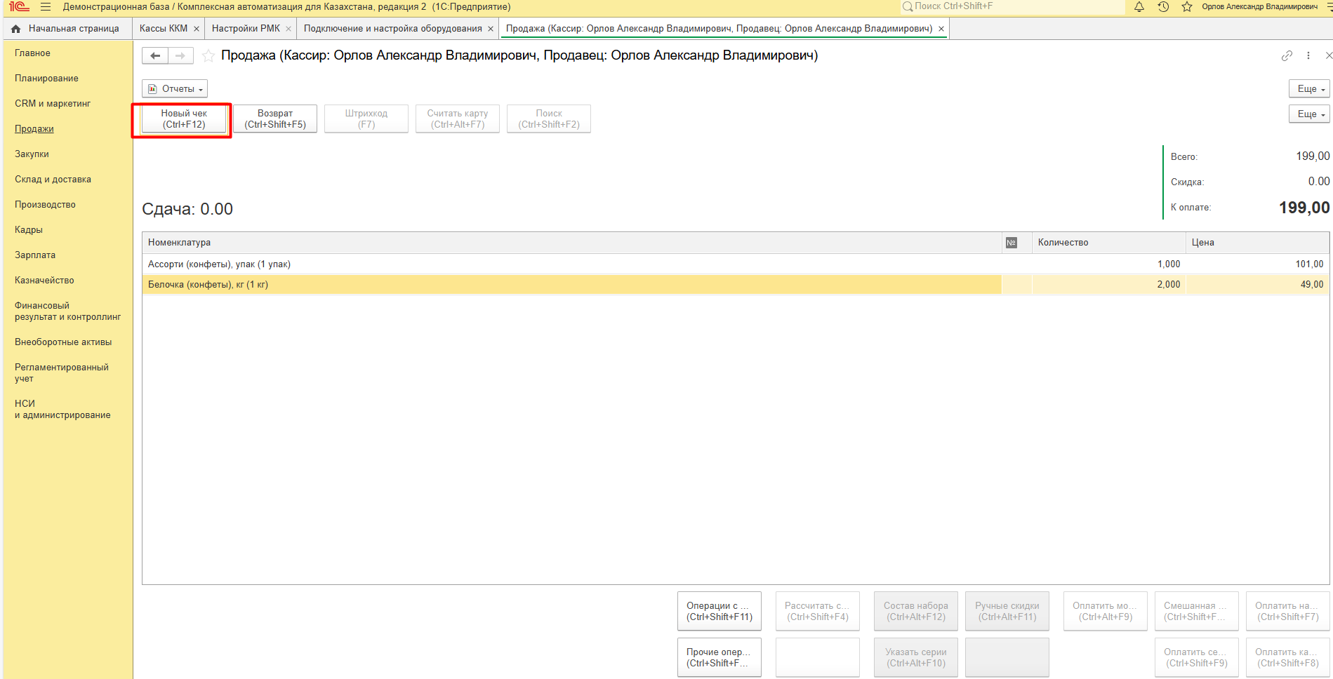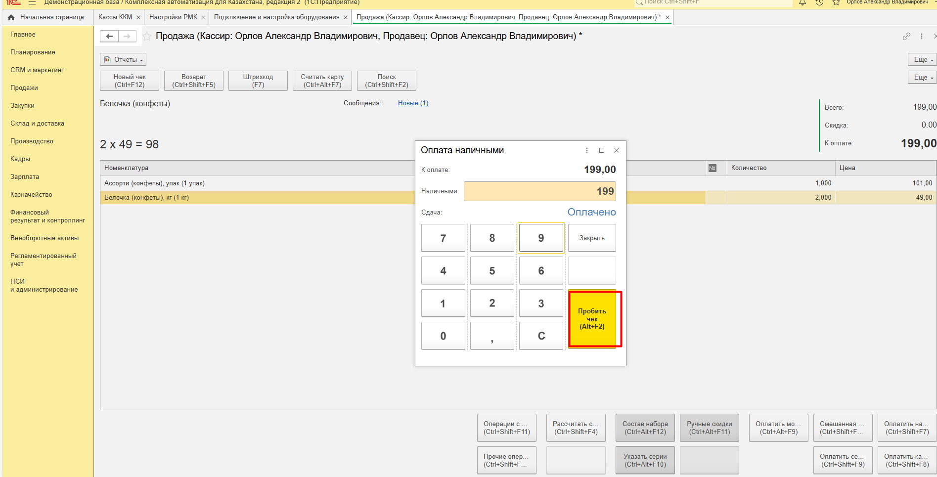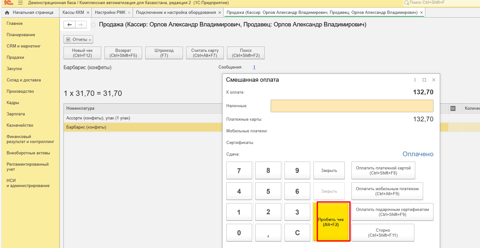 Теперь переходим к демонстрации того, как пробить чек ККМ.