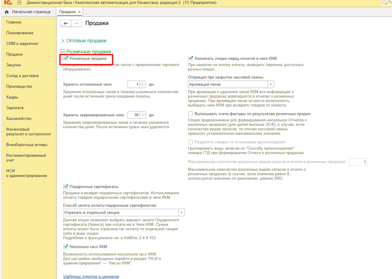 1. Настройка розничной торговле в 1С: КА для Казахстана