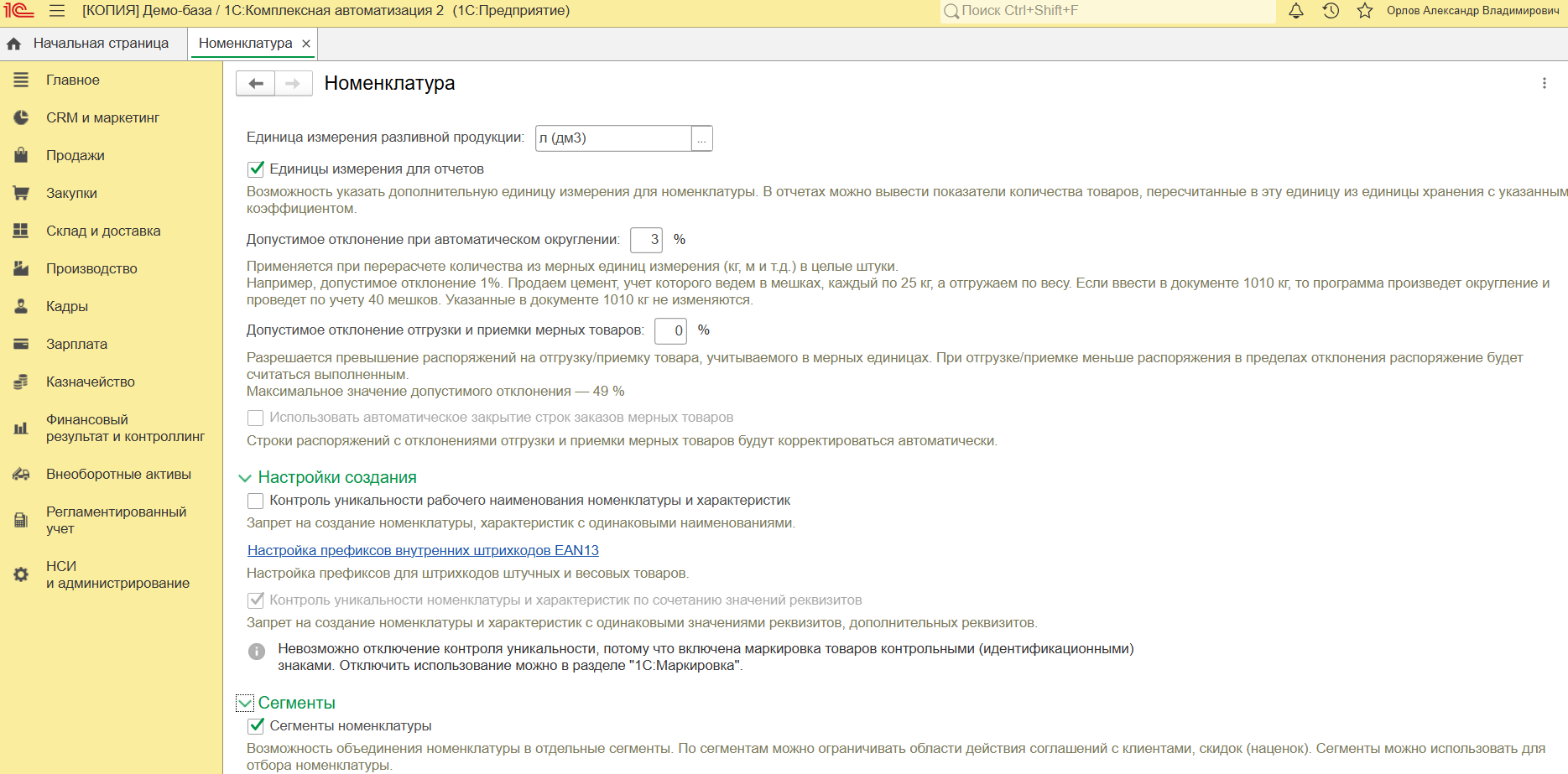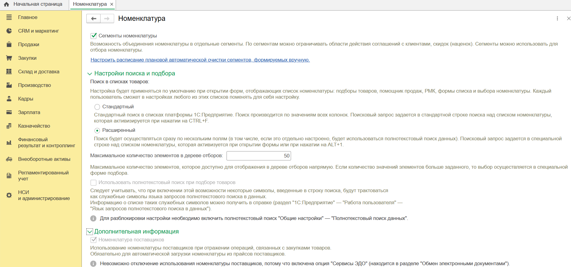 · Сегменты номенклатуры – данный функционал позволяет вести учет номенклатуры в разрезе сегментов номенклатуры. Можно сегментировать номенклатуру для различных целей, например, для вывода в отчеты, а также в качестве фильтров;
