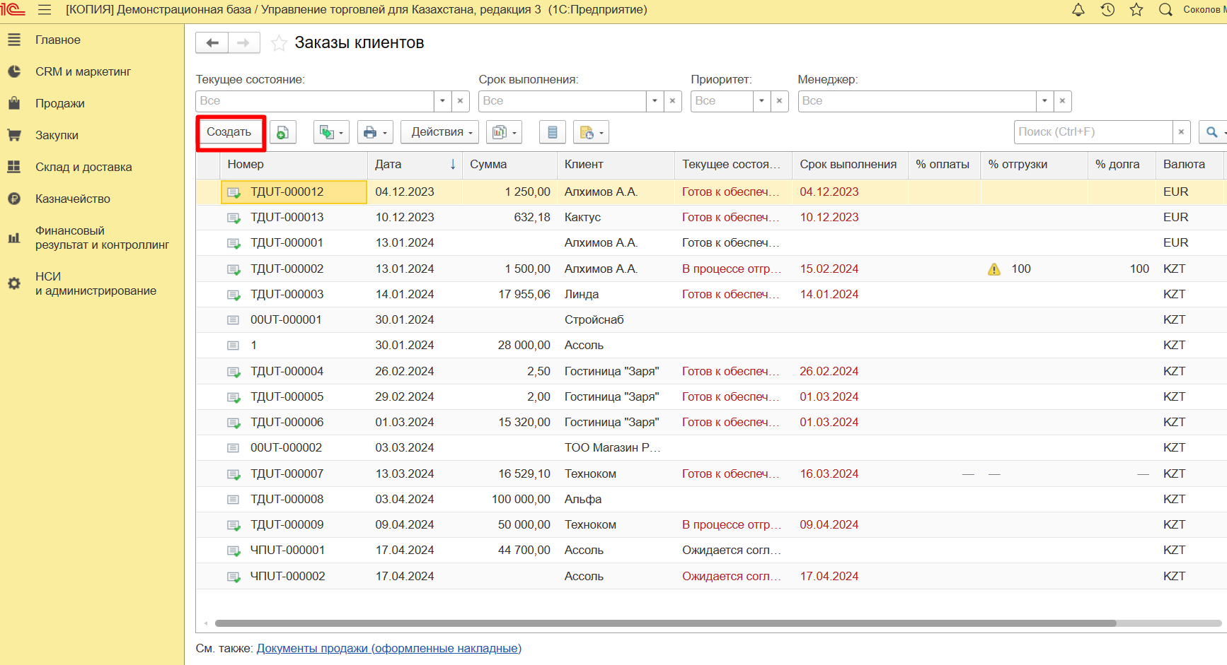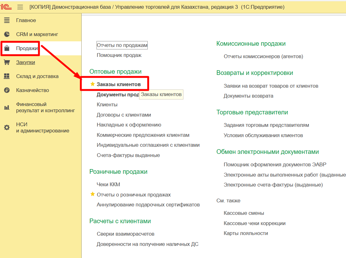 Заказ клиента создается из раздела продаж.