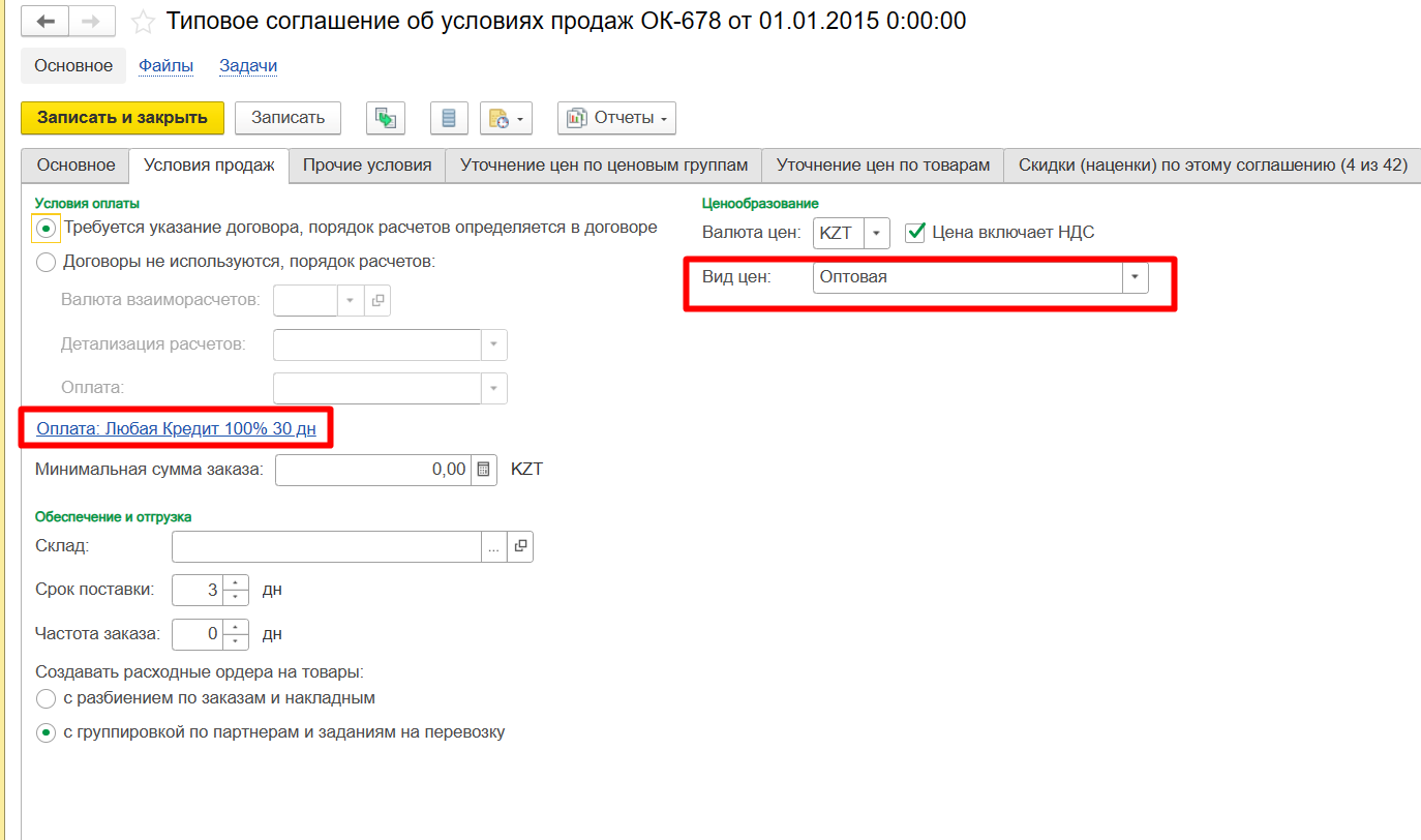 Важно отметить, что в соглашении можно настроить правила продаж с покупателем, например, установить форму и условия оплаты (процент предоплаты, отсрочки, количество дней отсрочки), закрепить ценовую матрицу для клиента, чтобы в документ автоматически подставлялись нужные цены. Также в соглашении можно определить будет ли использоваться договор.