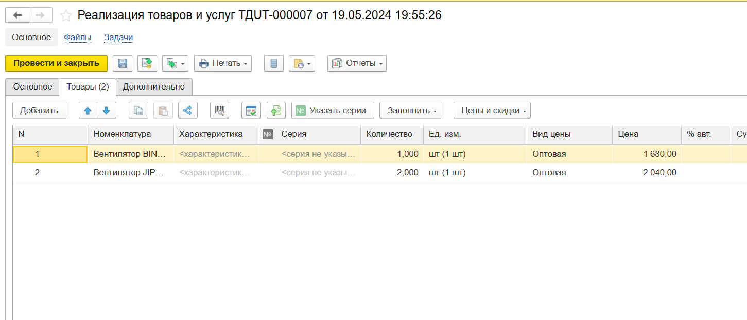 Переходим к созданию и оформлению документа реализации. Для возможности использования данного документа никаких настроек выполнять не требуется.