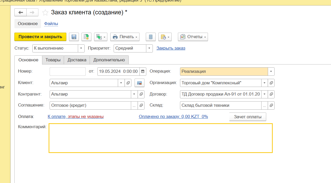 Заказ клиента (создание)