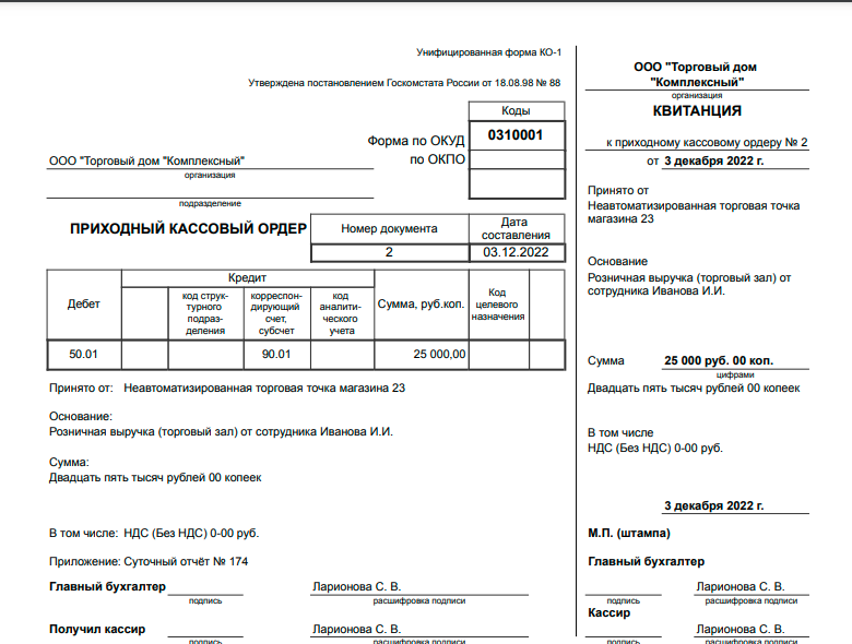 Біздің компанияның қызметкері бір күн ішінде кірісті компанияның кассасына тапсырған жағдай үшін басқа құжатты рәсімдейік.
