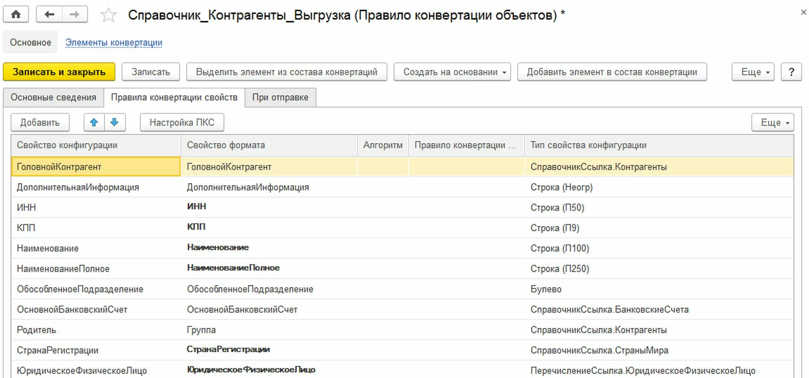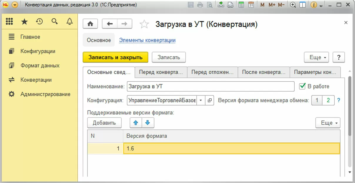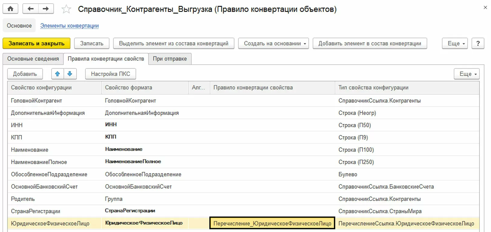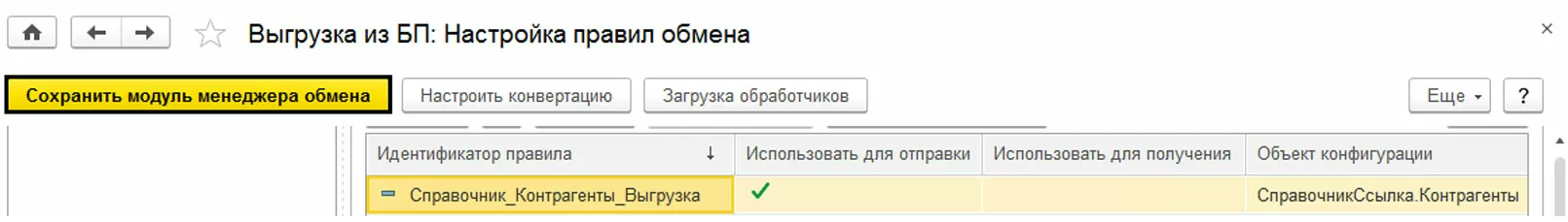 Точно так же необходимо сохранить правило по проведению конвертации по загрузочному справочнику, это продемонстрировано на скриншоте с примером ниже: