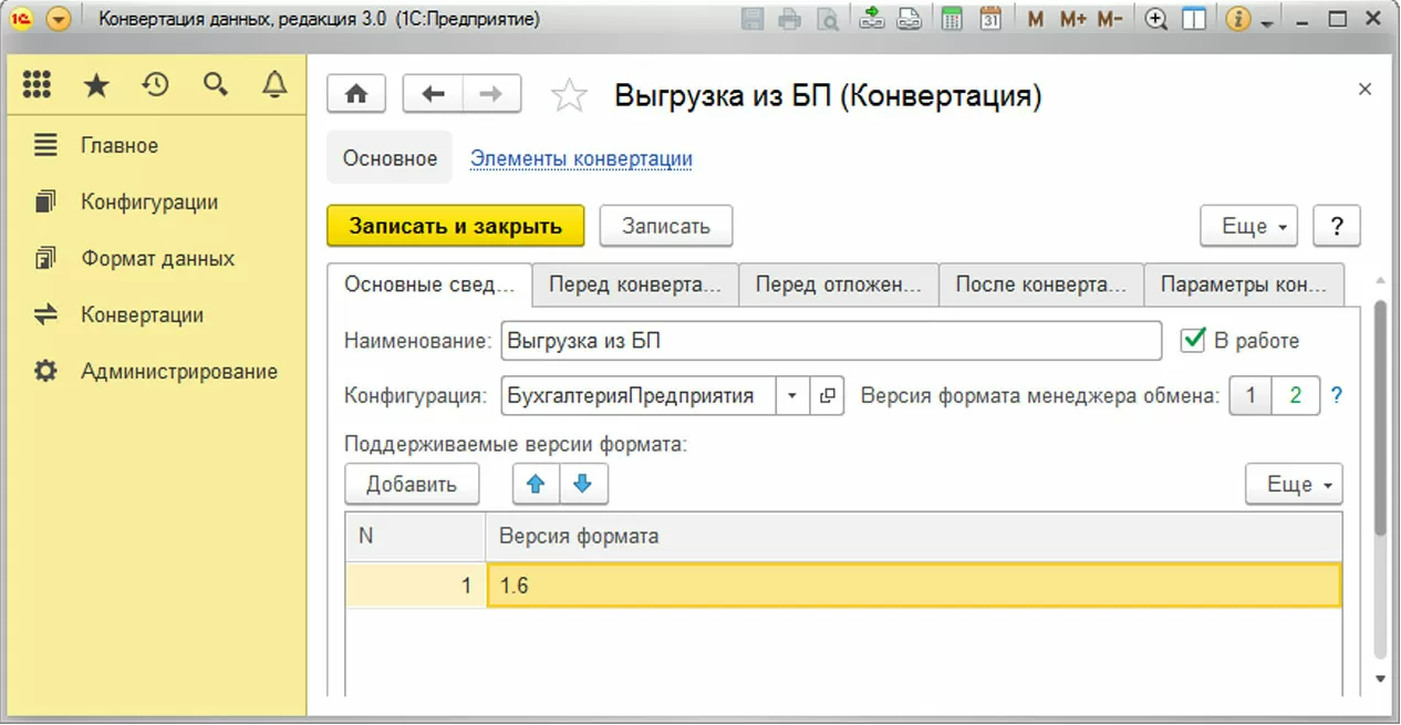 2. Порядок конвертации данных 3.0 в конфигурации программы 1С