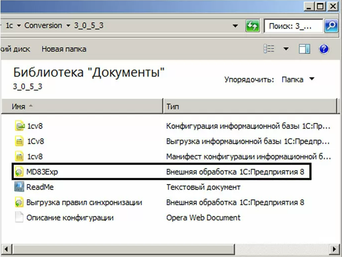 Для начала, обратимся к форме внешней обработки 1С 8.3, которая отвечает за описание метаданных, - «MD83Exp.epf» (либо «MD82Exp.epf»). Сама обработка находится внутри каталога с шаблонами в той папке, где установлена система конфигурации 1С. Ниже демонстрируется пример с расположением 1С внешней обработки документа на компьютере: