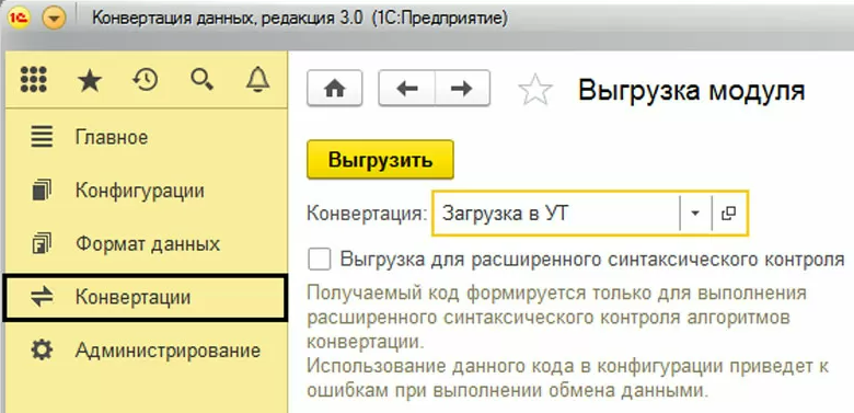 1. Сама программа располагается на сайте ИТС 1С 8.3, там её можно скачать. Пусть нужно произвести выгрузку справочника «Контрагенты» из конфигурации «1С:Бухгалтерия» в конфигурацию «1С:Управление торговлей». По сути, в этом случае, конфигурация «1С:Бухгалтерия» является «Базой-источником», а конфигурация «1С:УТ» - «Базой-приёмником»;