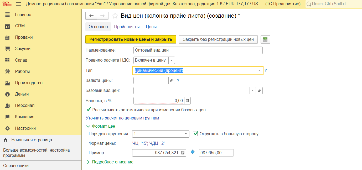 1. Функции ценообразования в конфигурации системы 1С: УНФ для Казахстана