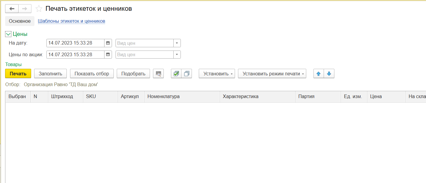 6. Печать этикетов и ценников в 1С УНФ для Казахстана