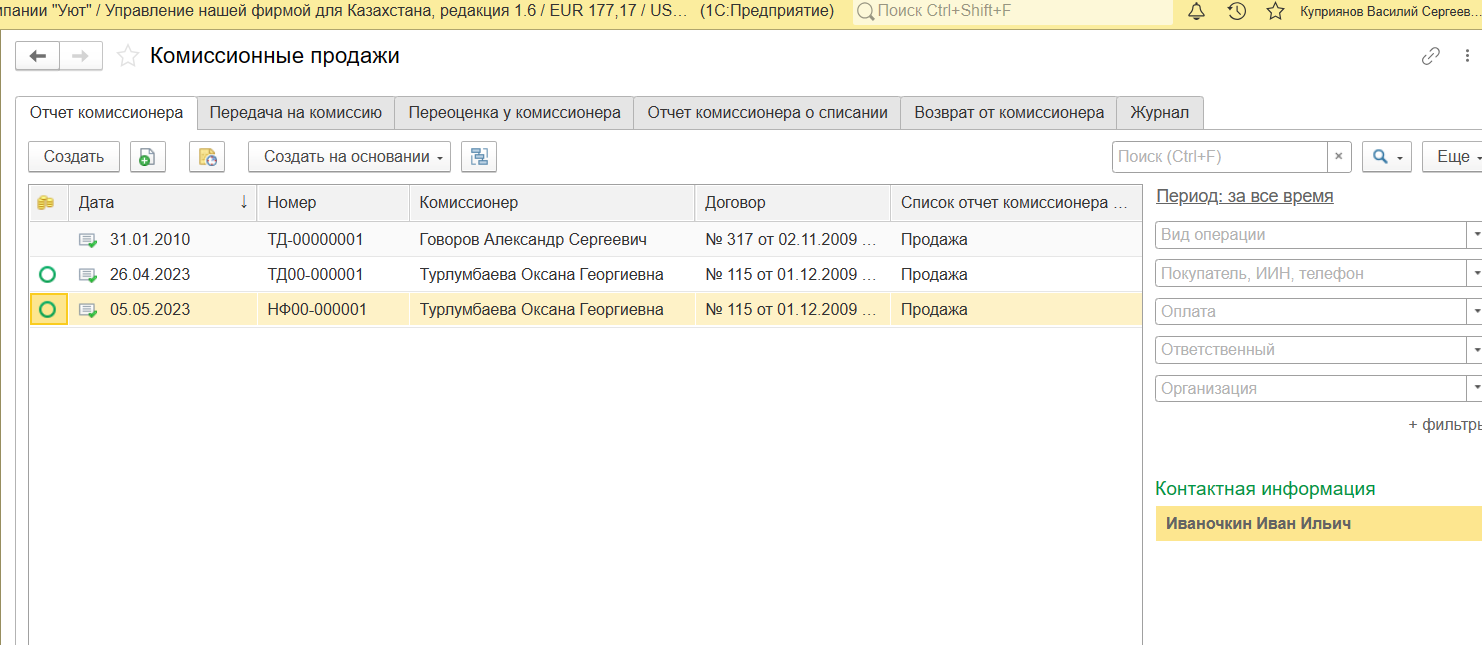 5. Комиссионные продажи в 1С: Управление нашей фирмой для Казахстана