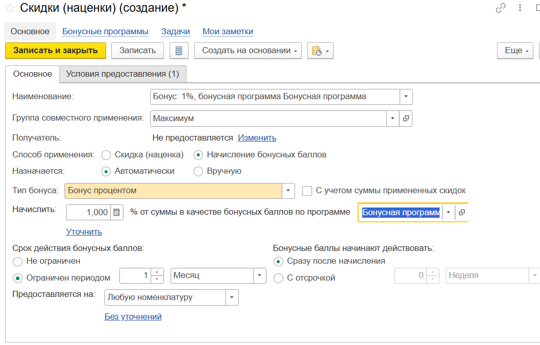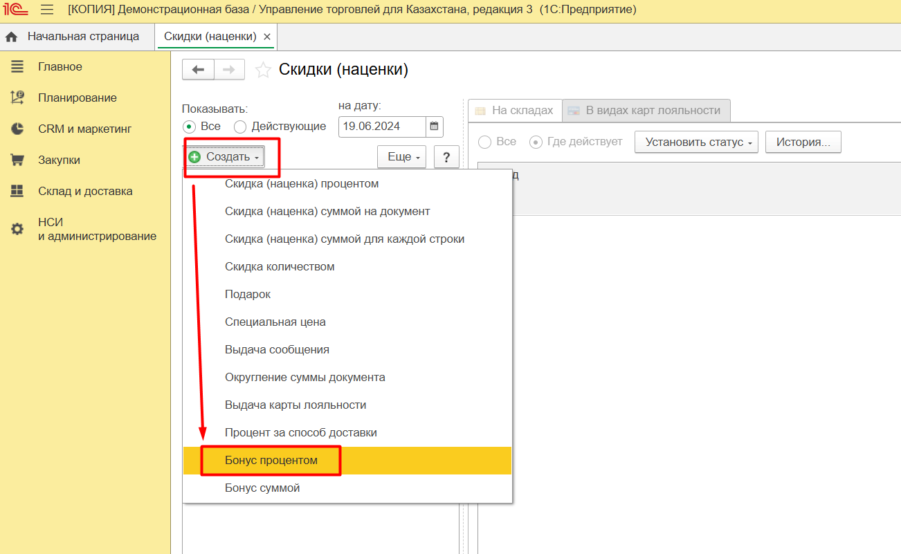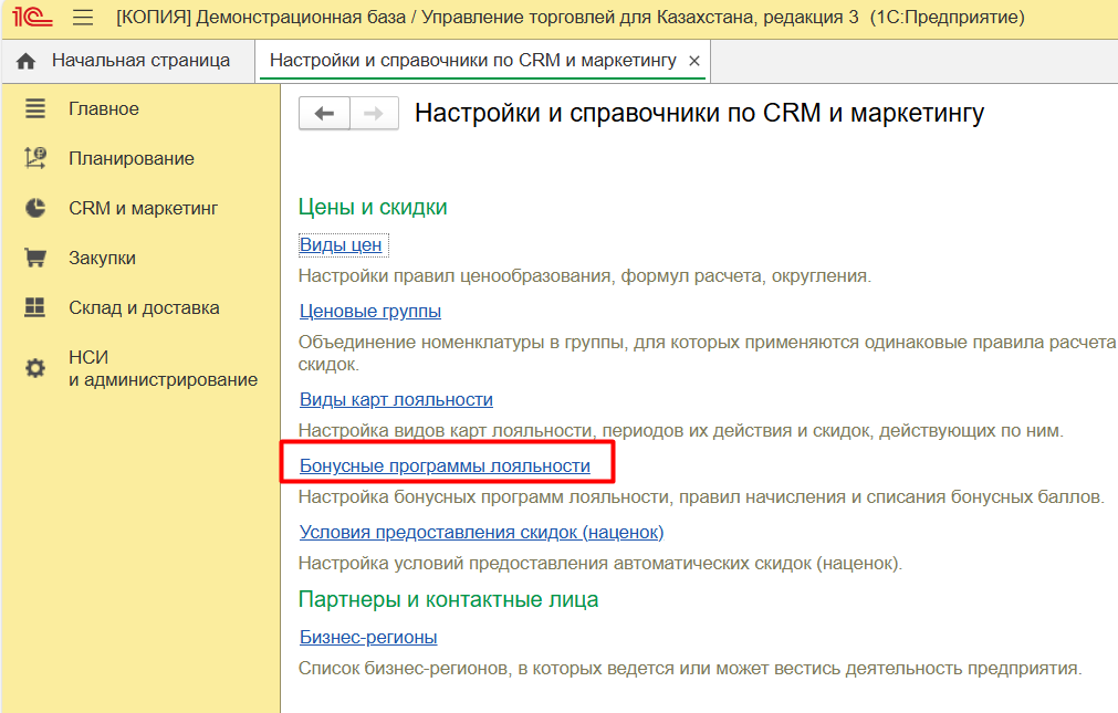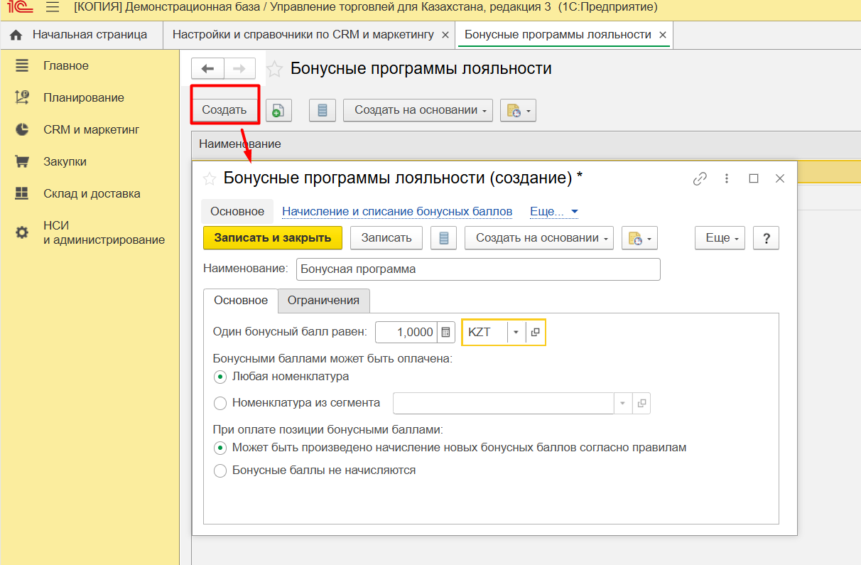 2. Бонусная система лояльности в 1С: УТ для Казахстана