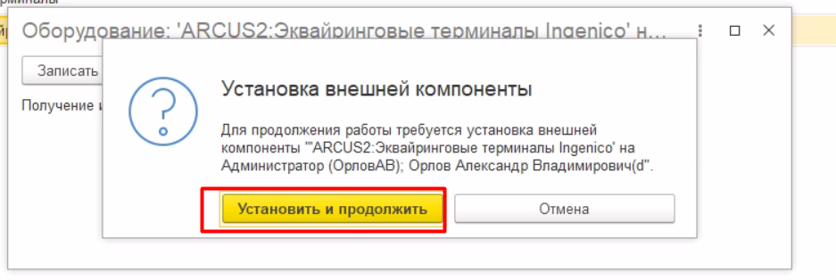 Далее переходим в параметры подключения и устанавливаем внешнюю компоненту (она должна загрузиться автоматически).