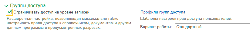 Примечание: Выполнять настройку прав доступа пользователей по организациям позволяет настройка «Ограничить доступ на уровне записей».