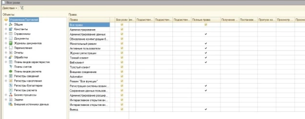 Для удобства в Конфигураторе существует таблица «Все роли», где вы сможете увидеть общую картину настроек.