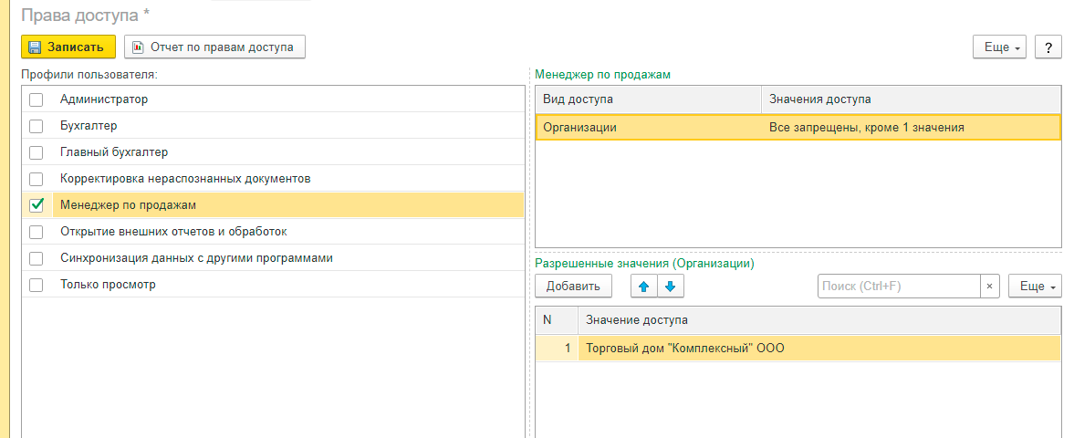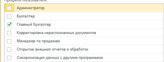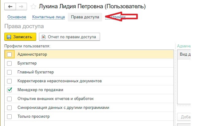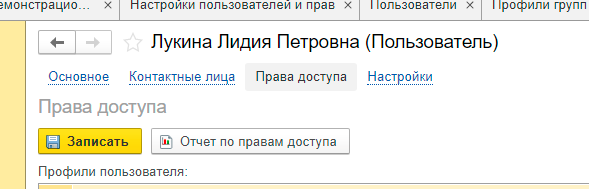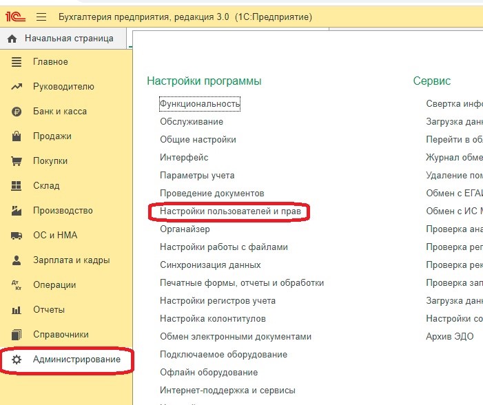 2. Корректировка прав пользователя в 1С:Бухгалтерия предприятия 3.0