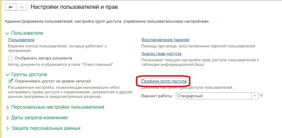 1. Как посмотреть настройки прав доступа пользователей в 1С:Бухгалтерия 3.0?