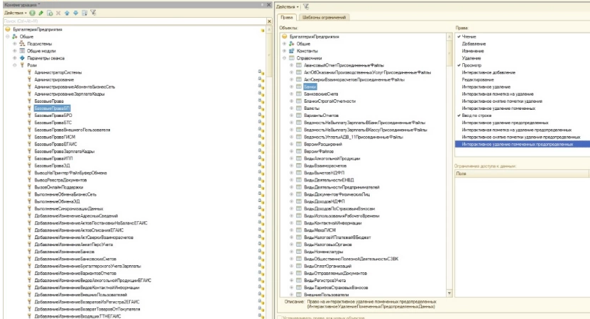2. Корректировка прав пользователя в конфигурации 1С:Бухгалтерия предприятия 3.0