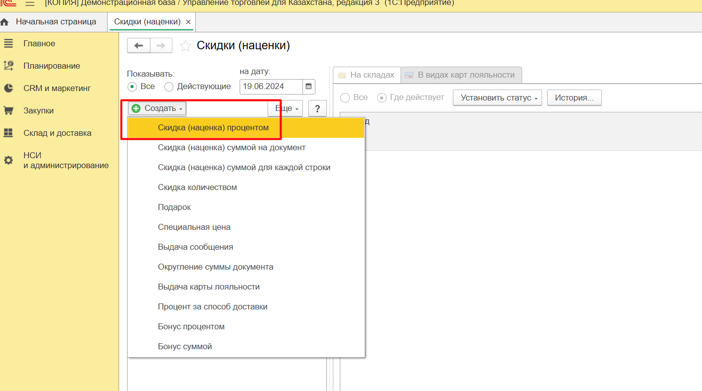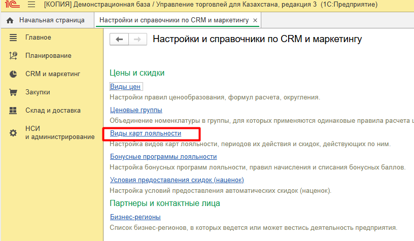 2. Дисконтные карты в системе 1С: Управление Торговлей 3 для Казахстана