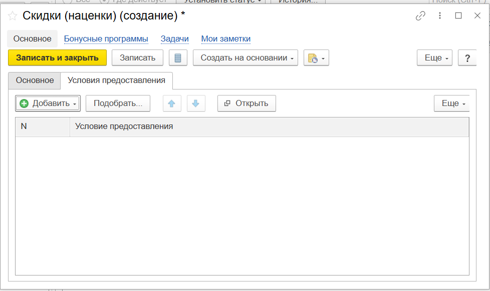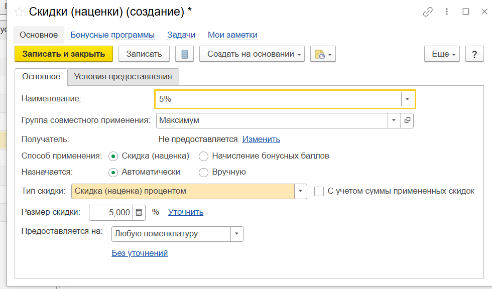 Скидки (наценки) (создание)